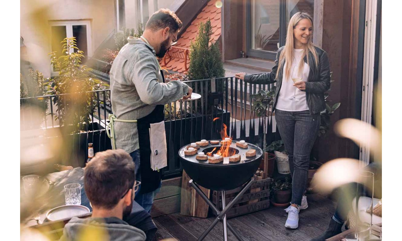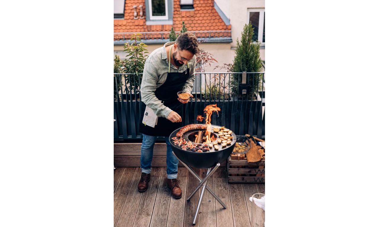 Гриль - вогнище Bowl With Tripod від Hoefats має унікальний дизайн з поворотною півкулею (захист від вітру і контроль тепла).
