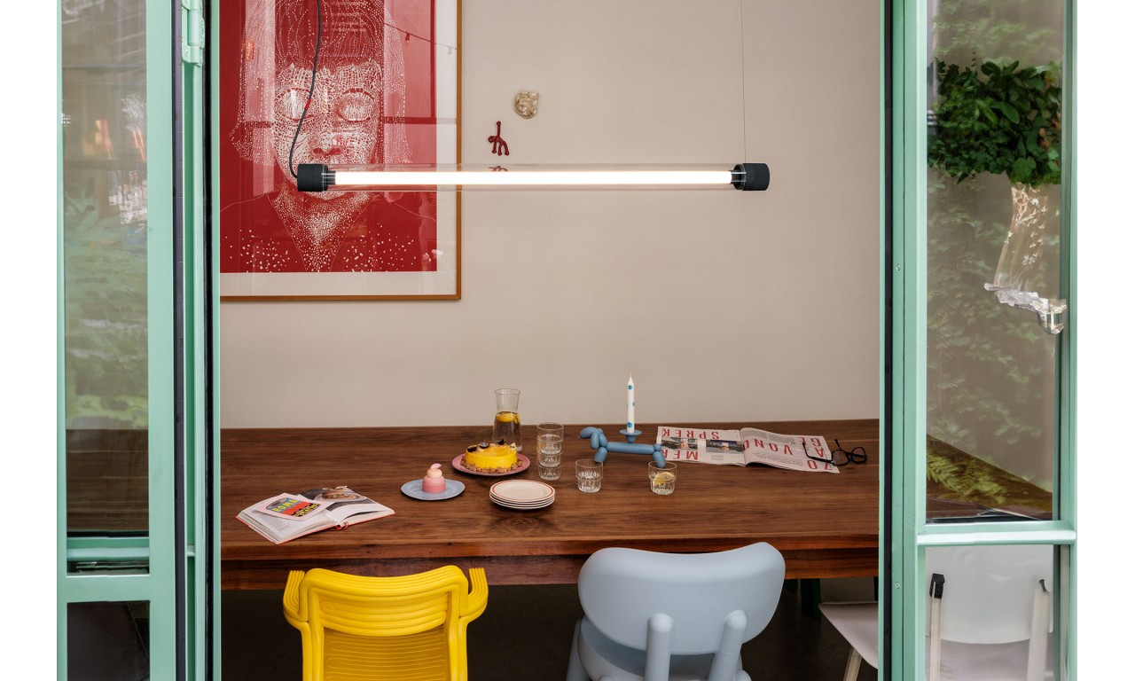 Можна кріпити Tjoep як на стіні, так і на стелі. Це ідеальна підвісна лампа у вигляді трубки над обіднім або письмовим столом або настінний світильник. У будь-якому випадку, завдяки настінному і стельовому кріпленню, що входить в комплект, обидва варіанти дуже прості.