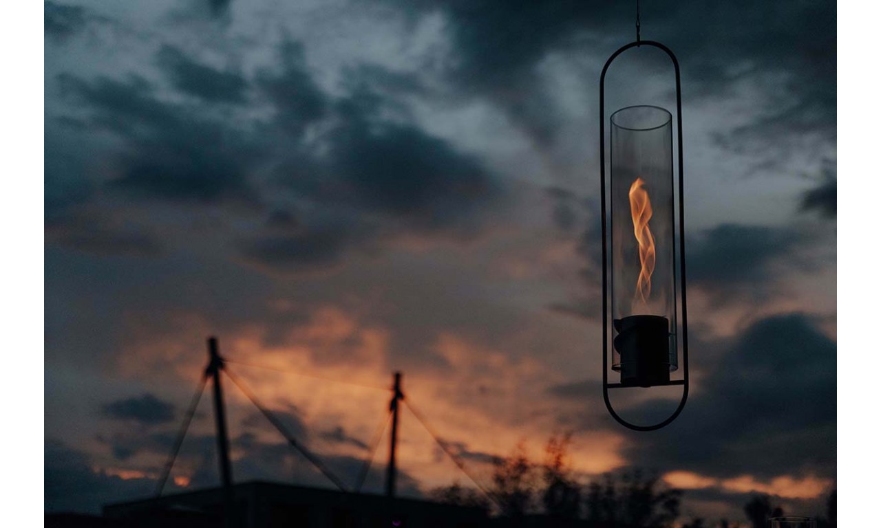 Принцип настільки ж простий, наскільки винахідливий: просто додайте біоетанол Höfat в запасний склянку, повісьте SPIN в бажаному положенні і запаліть його так само легко і безпечно, як свічку. Потім помістіть скляний циліндр над ним, і вражаючий вогненний вихор освітить кімнату - зовні на терасі або всередині вашої вітальні.
