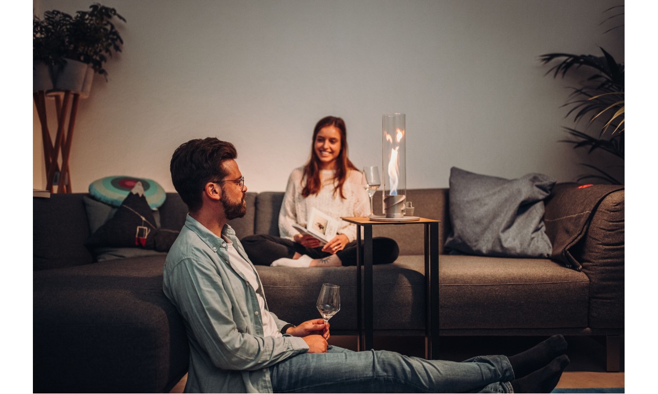 Захоплюючий вир вогню в скляному циліндрі, який створить атмосферу багаття на вашому балконі або терасі. Горить без запаху, сажі та диму.