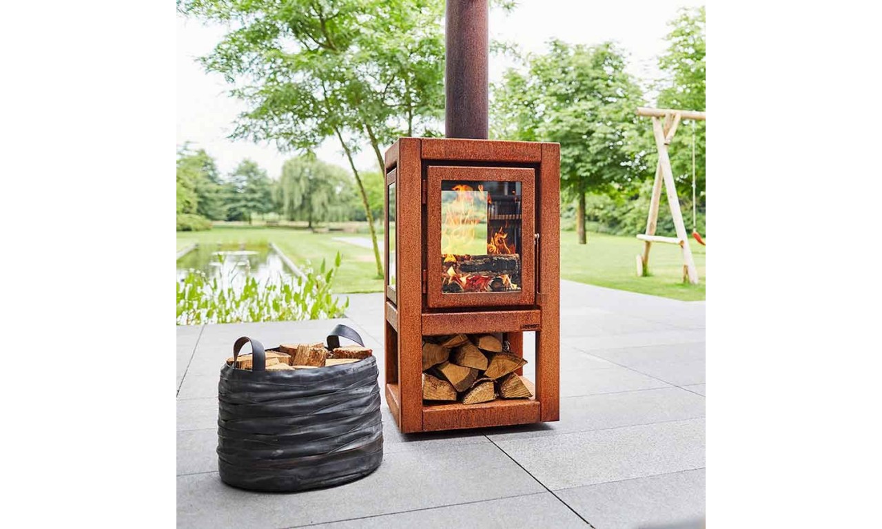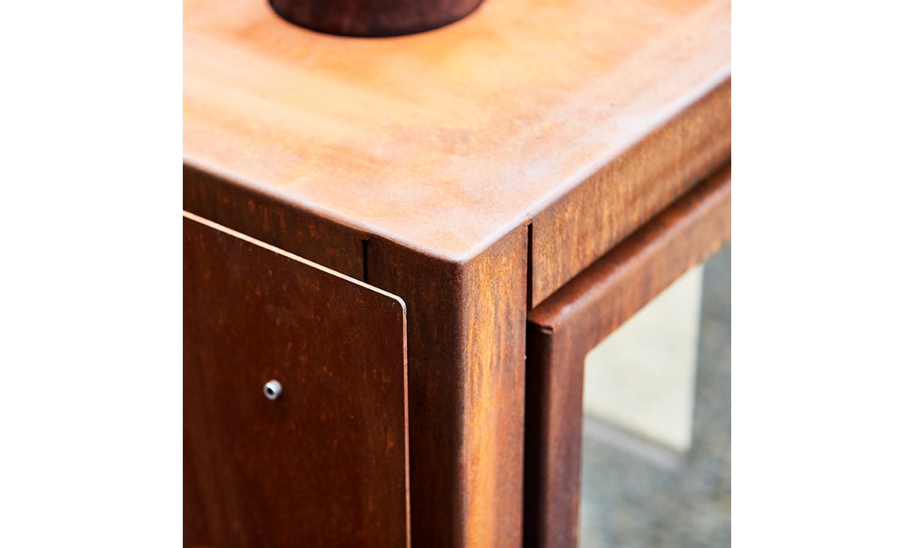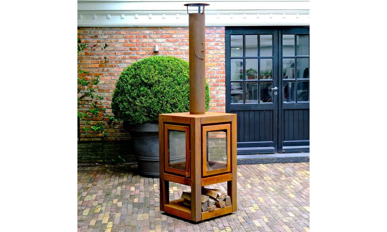 Модель Quaruba Mobile – це мобільна дров'яна піч із елегантним дизайном, призначена для використання на відкритих терасах. Quaruba має унікальну модульну конструкцію і тому збирається за бажанням замовника від 1 (дверцята зі скляним фасадом) до 4 скляних панелей. Виготовлена зі сталі CorTen.