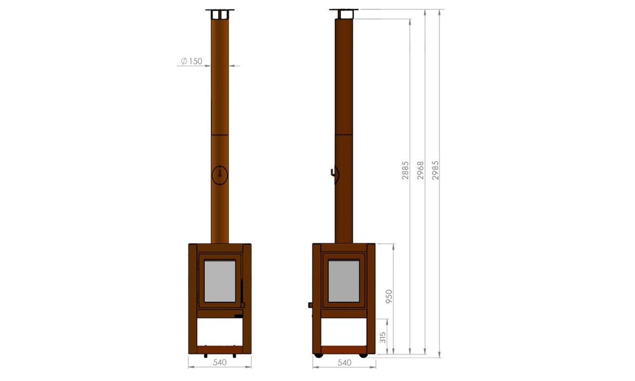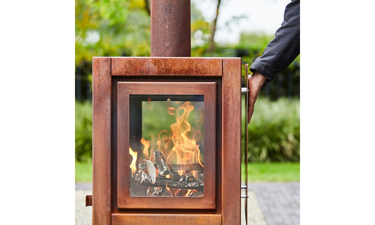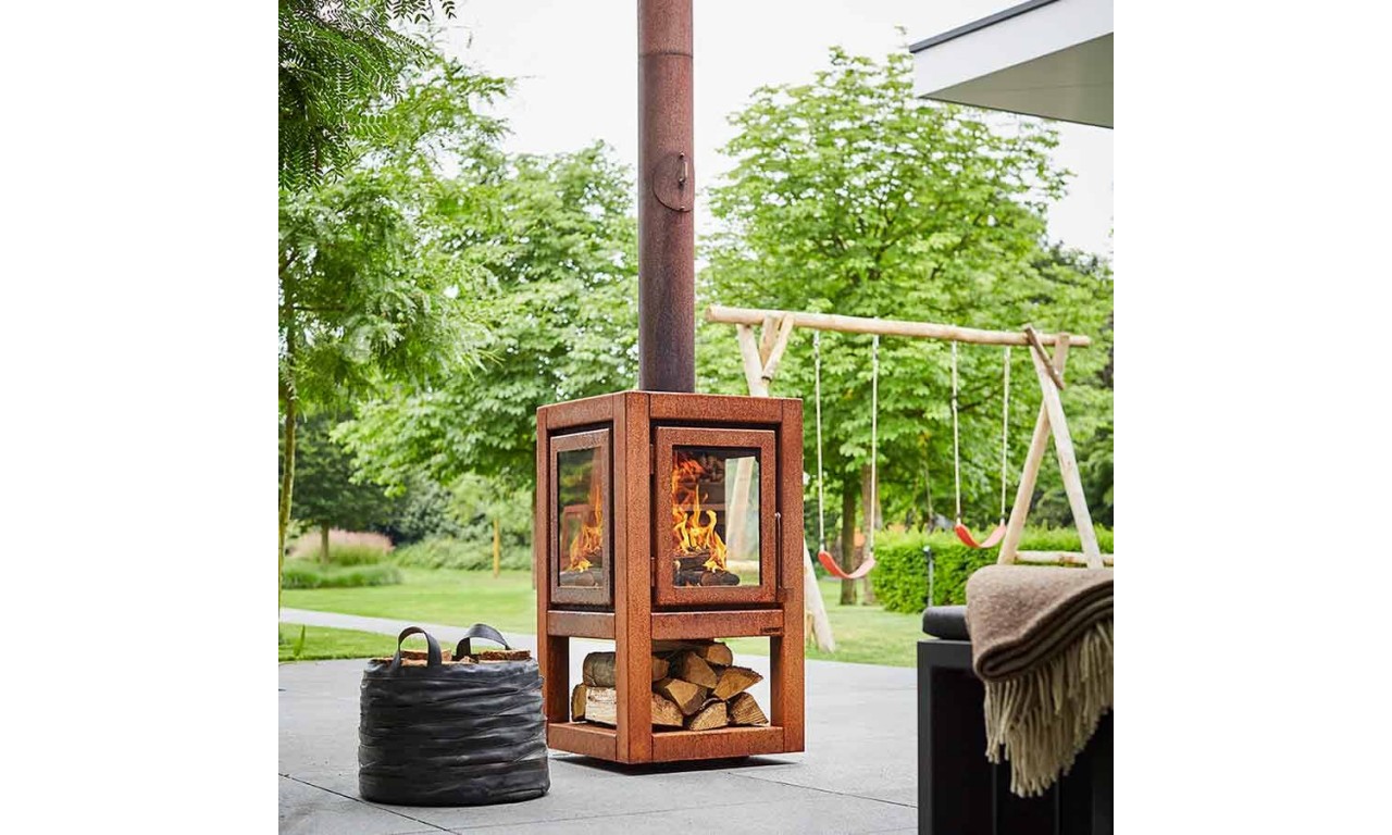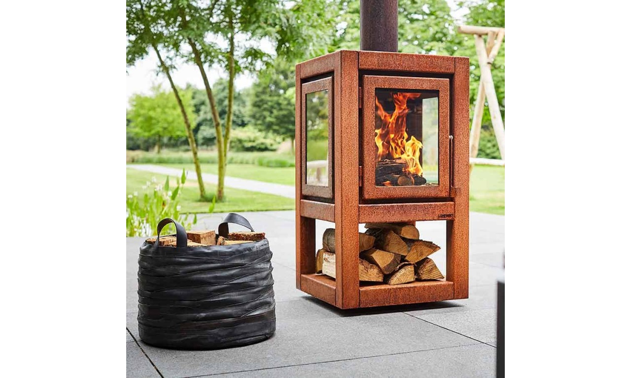 Модель Quaruba Mobile – це мобільна дров'яна піч із елегантним дизайном, призначена для використання на відкритих терасах. Quaruba має унікальну модульну конструкцію і тому збирається за бажанням замовника від 1 (дверцята зі скляним фасадом) до 4 скляних панелей. Виготовлена зі сталі CorTen.
