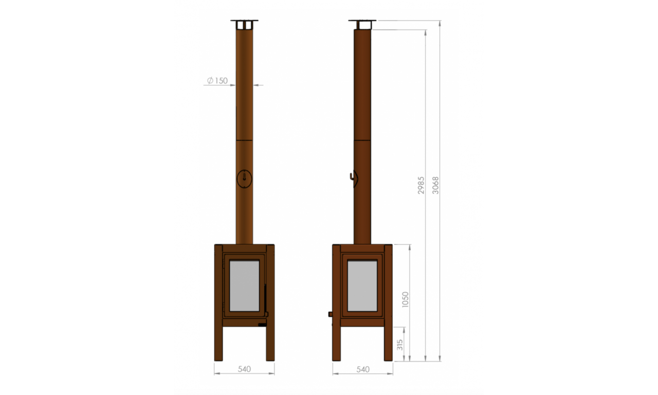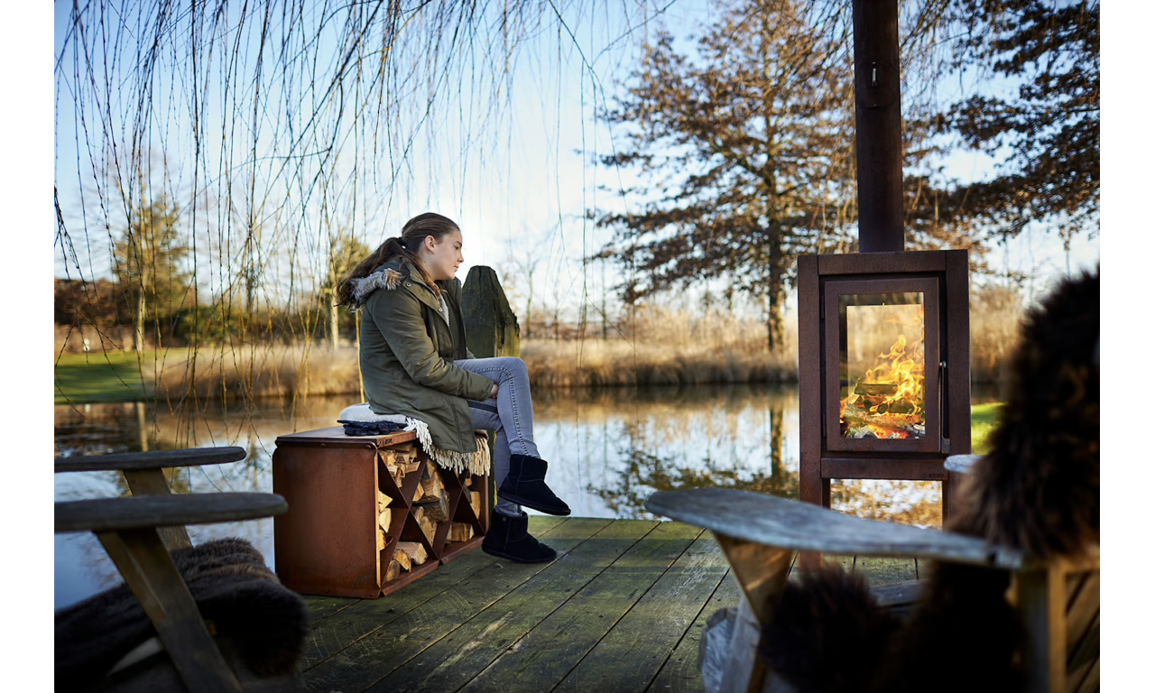 Дверний замок захований між дверною панеллю та правою ніжкою. Скляні боковини оснащені системою SGI. Ця «система чистого скла» забезпечує створення потоку повітря поблизу вікна. Це сприяє процесу горіння і означає, що вікно завжди залишається чистим, і ви можете продовжувати насолоджуватися атмосферною грою вогню. Якщо ви обираєте варіант із трьома сторонами скла, тильна частина стандартно оснащена сталевою пластиною товщиною 3 мм.